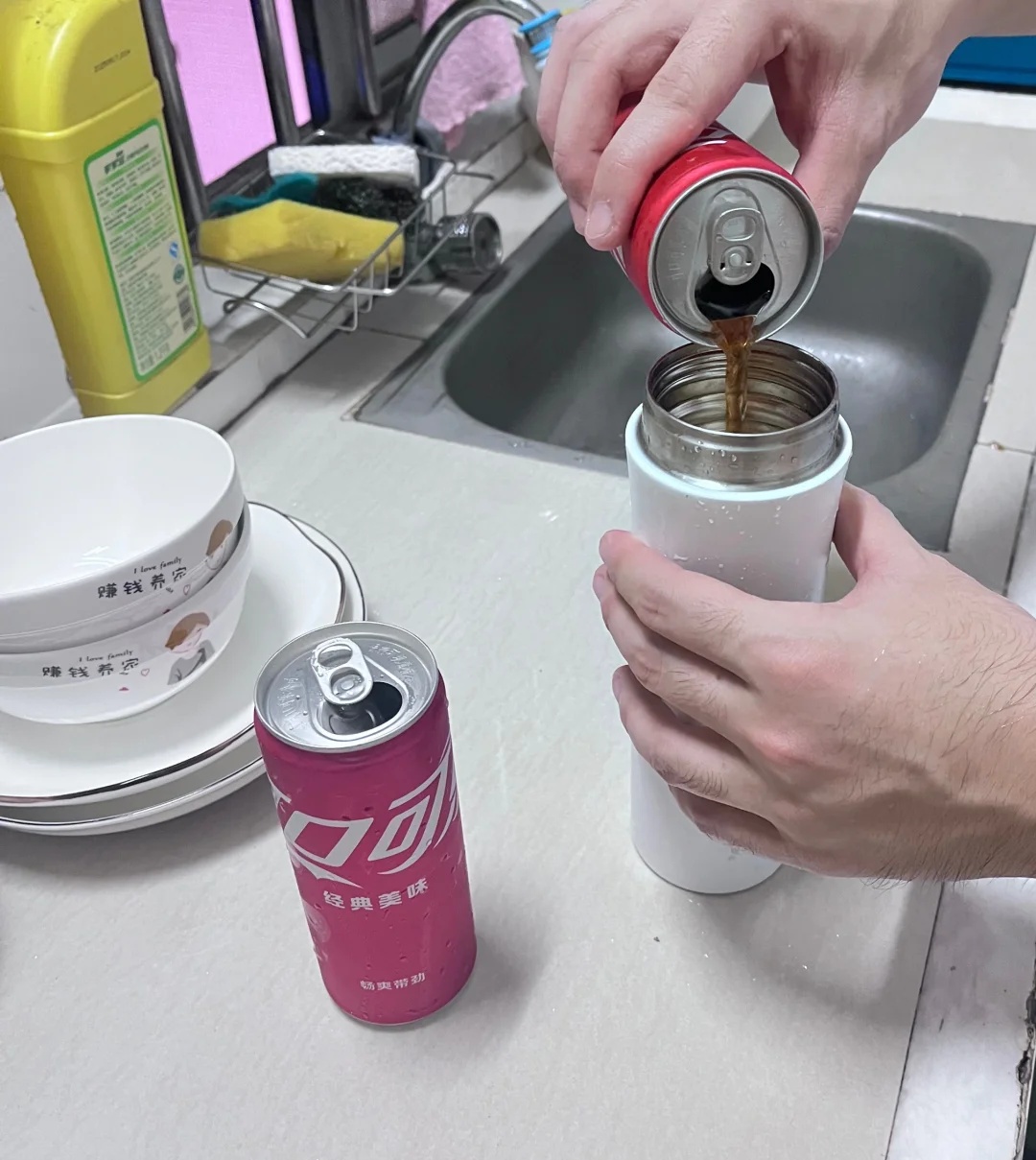 所以像碳酸饮料还有酸性的果汁,不要长时间放在保温杯内,而且如果是用保温杯装碳酸饮料一定要注意不能放得过多,也要避免剧烈晃动,以免溶解的气体,会产生杯内的压力,造成安全隐患。